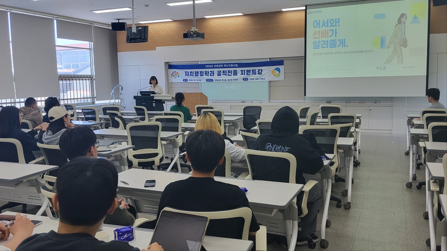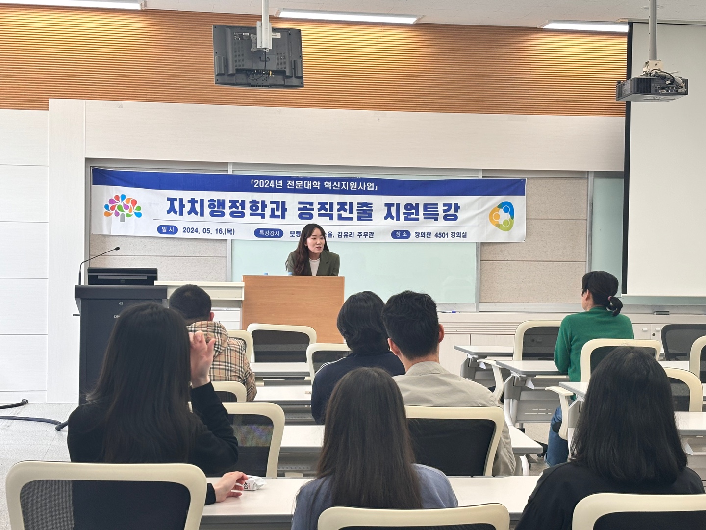 - 특강 주제: 전공 관련 분야의 전문가 초청을 통해 공직 진출에 도전하는 학생들에게 학습 동기부여 및 올바른 공직관 형성