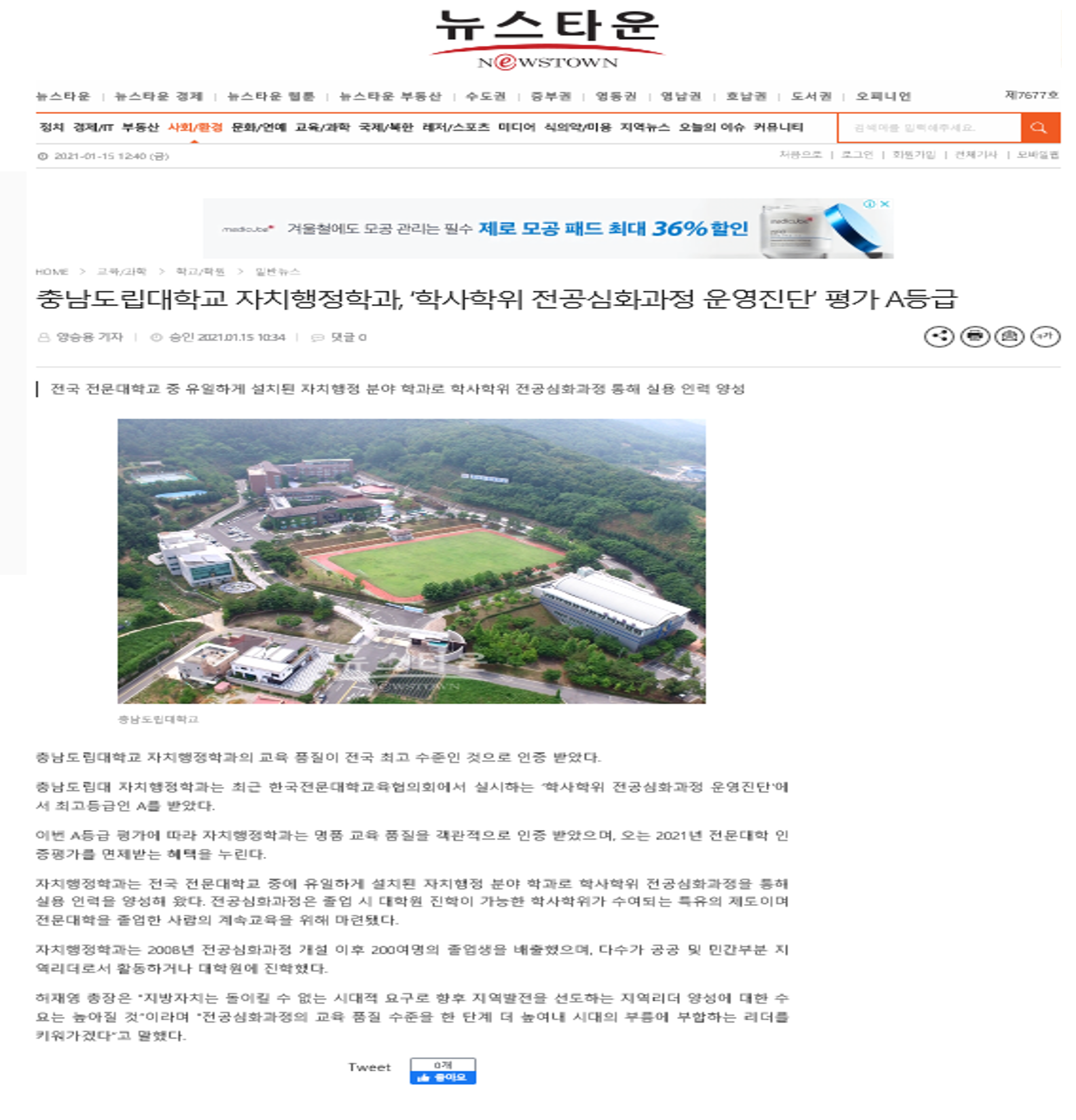 [언론보도] 충남도립대학교 자치행정학과, ‘학사학위 전공심화과정 운영진단’ 평가 A등급