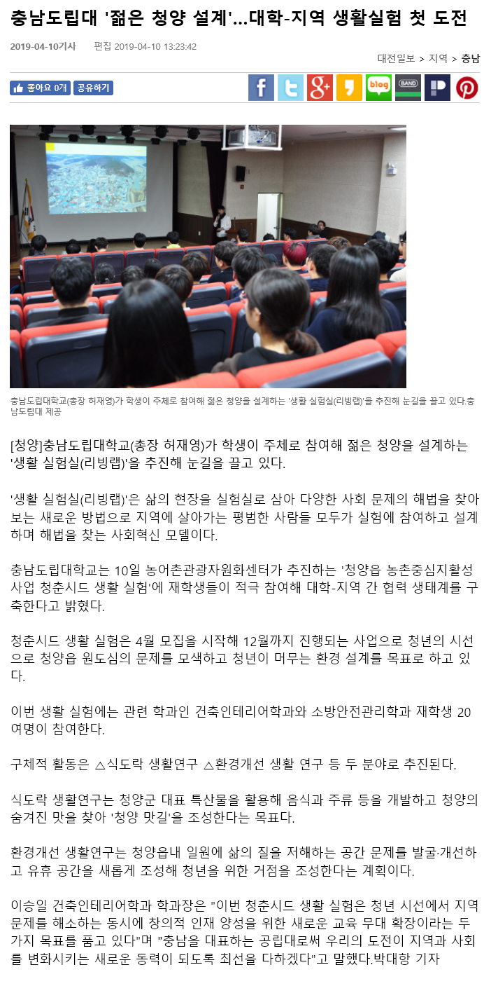 충남도립대 "젊은 청양 설계" 대학, 지역 생활 실험 첫 도전(대전일보)