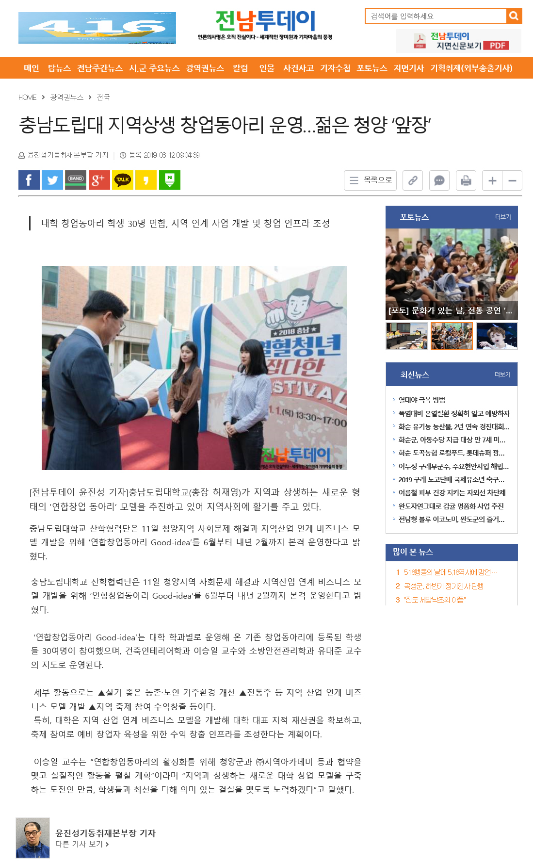 충남도립대 지역상생 창업동아리 운영…젊은 청양 ‘앞장’(전남투데이)