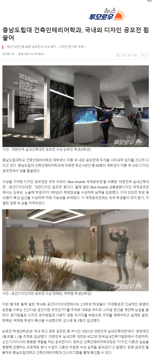 충남도립대학교 건축인테리어학과 국내외 디자인 공모전 휩쓸어