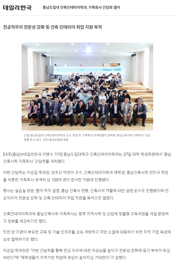 충남도립대 건축인테리어학과, 가족회사 간담회 열어- 데일리한국