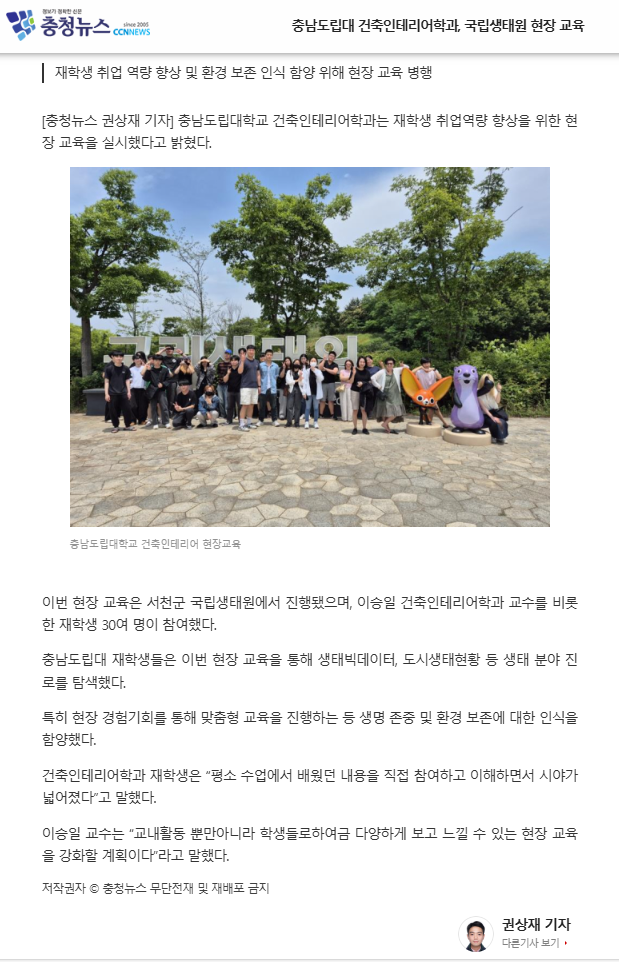 충남도립대 건축인테리어학과, 국립생태원 현장 교육- 충청뉴스