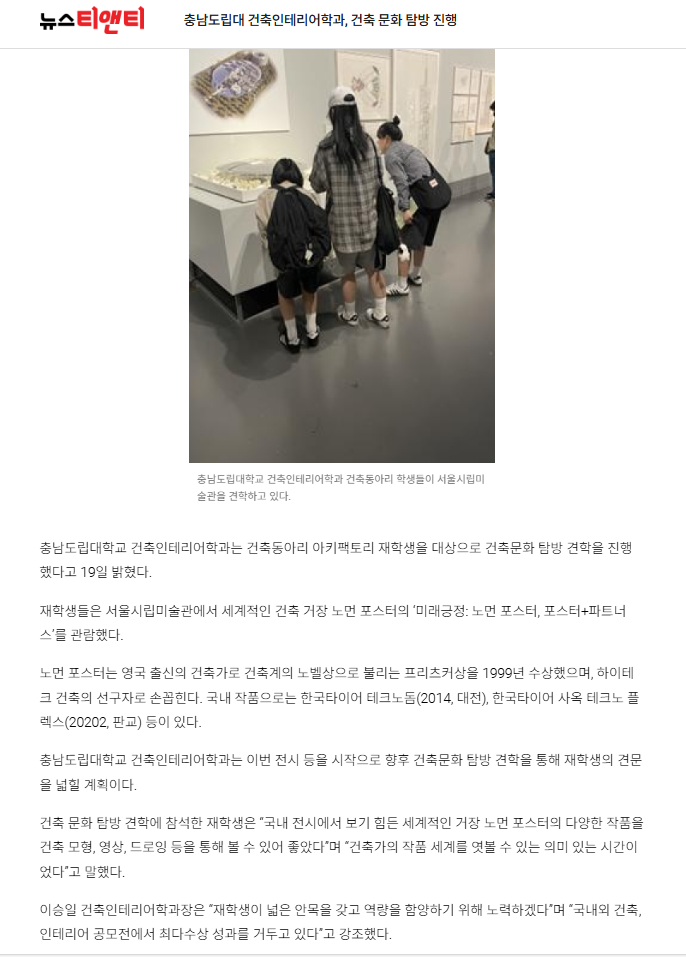 충남도립대 건축인테리어학과, 건축 문화 탐방 진행-뉴스티앤티
