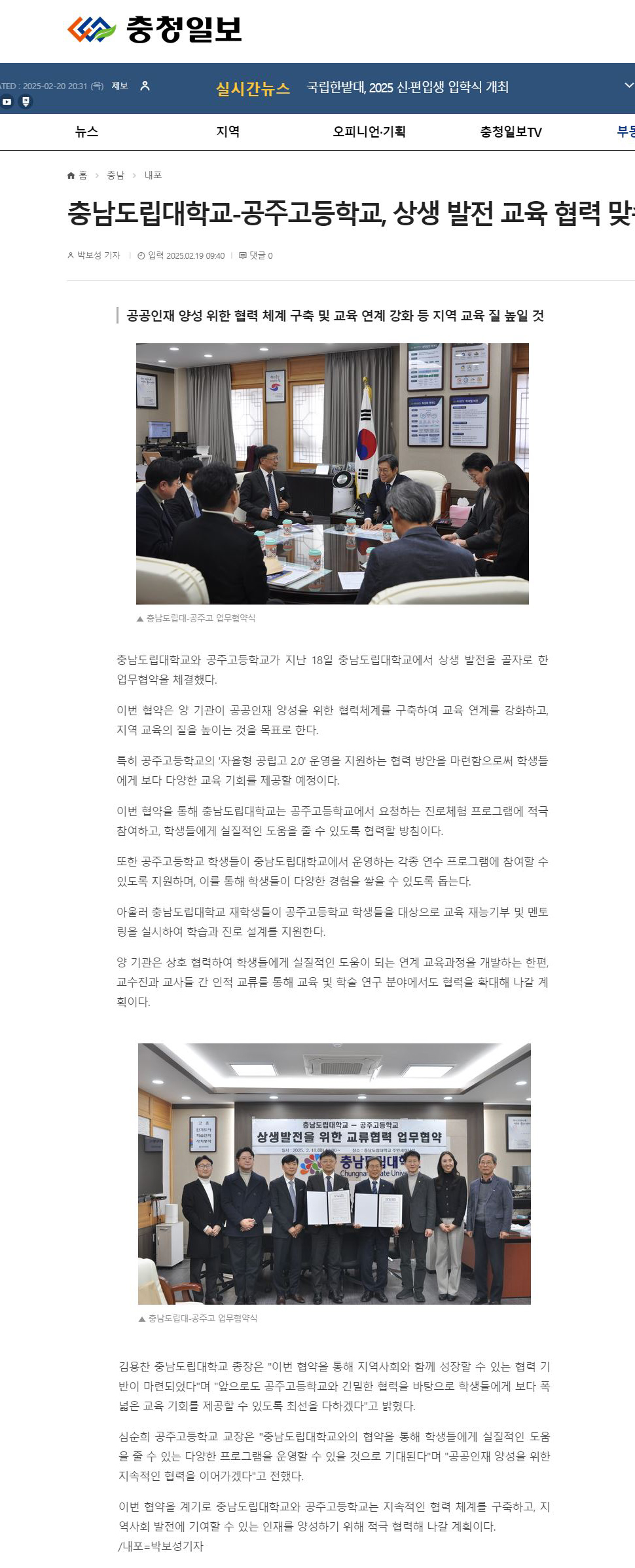 공주고등학교, 상생 발전 교육 협력_충청일보