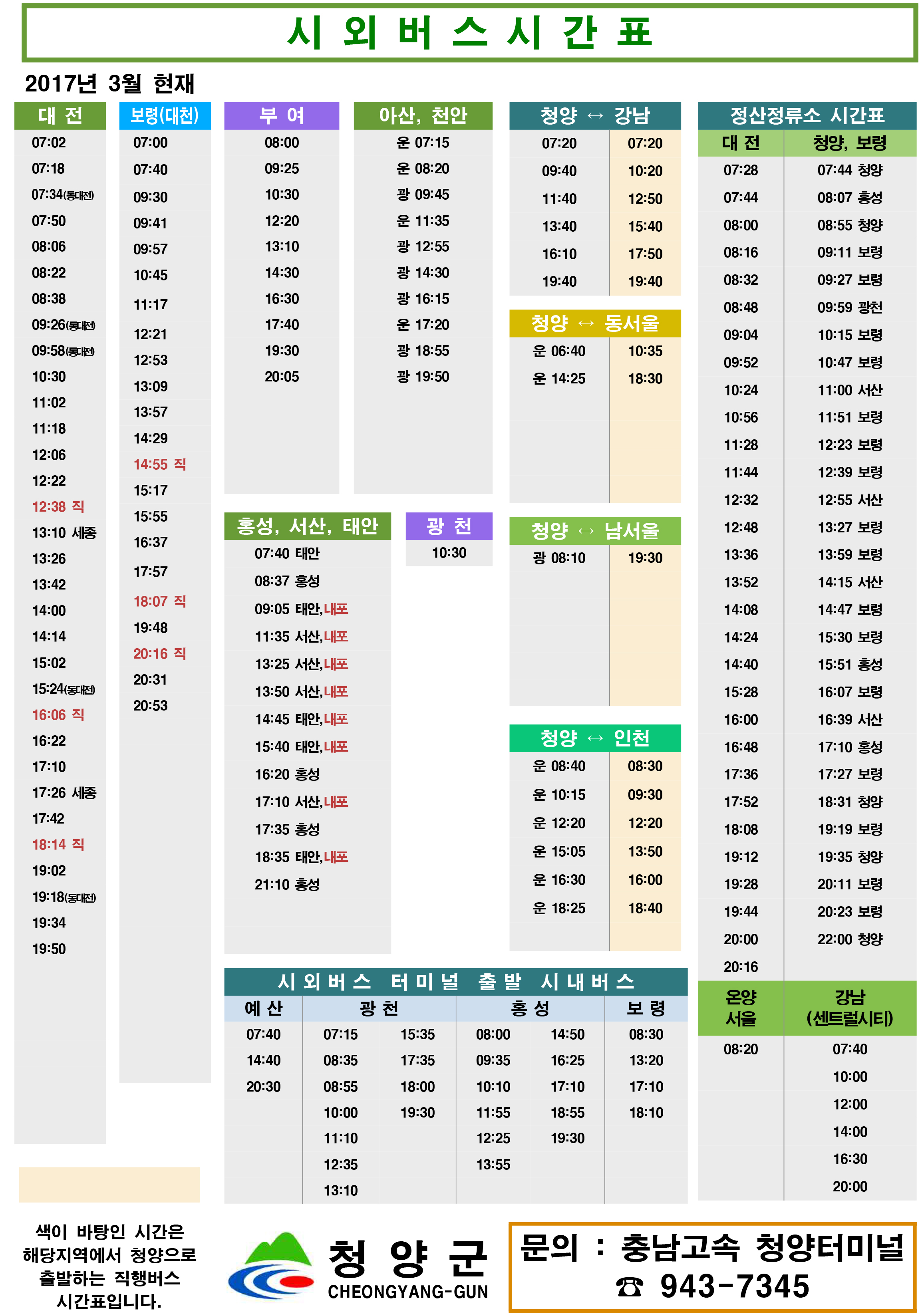집합장소 및 시간 : 청양시외버스터미널/ 10:00