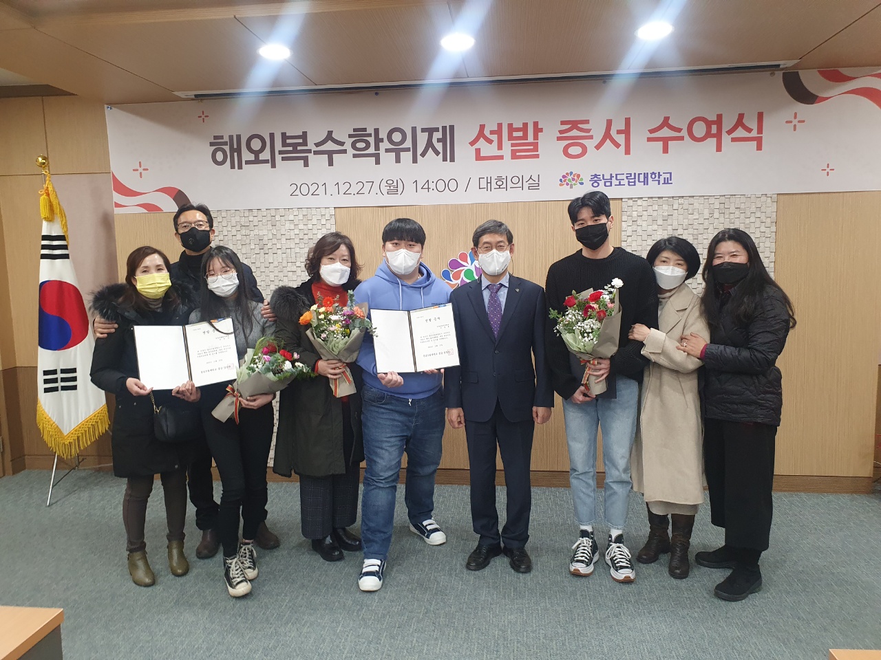 충남도립대학교 2022년 해외복수학위제 대상자 선발 증서 수여식을 2021년 12월 27일 2시에 대회의실에 개최하였습니다.