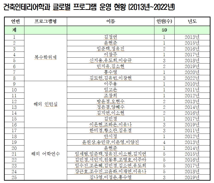 글로벌 해외 복수학위 및 인턴십 학생 현황