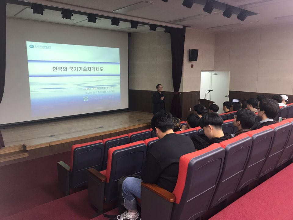 소방안전관리과 1학년 재학생들을 대상으로 한 한국산업인력공단 박준규 연구원님의 위험물 산업기사 관련 특강