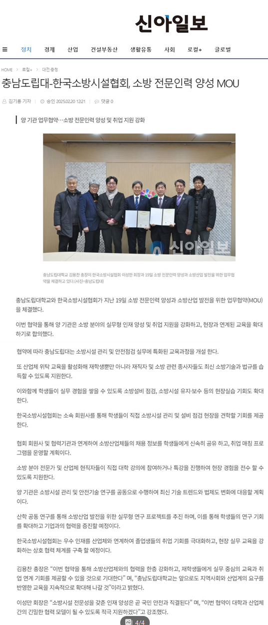 소방시설 협회와 MOU를 체결했습니다.