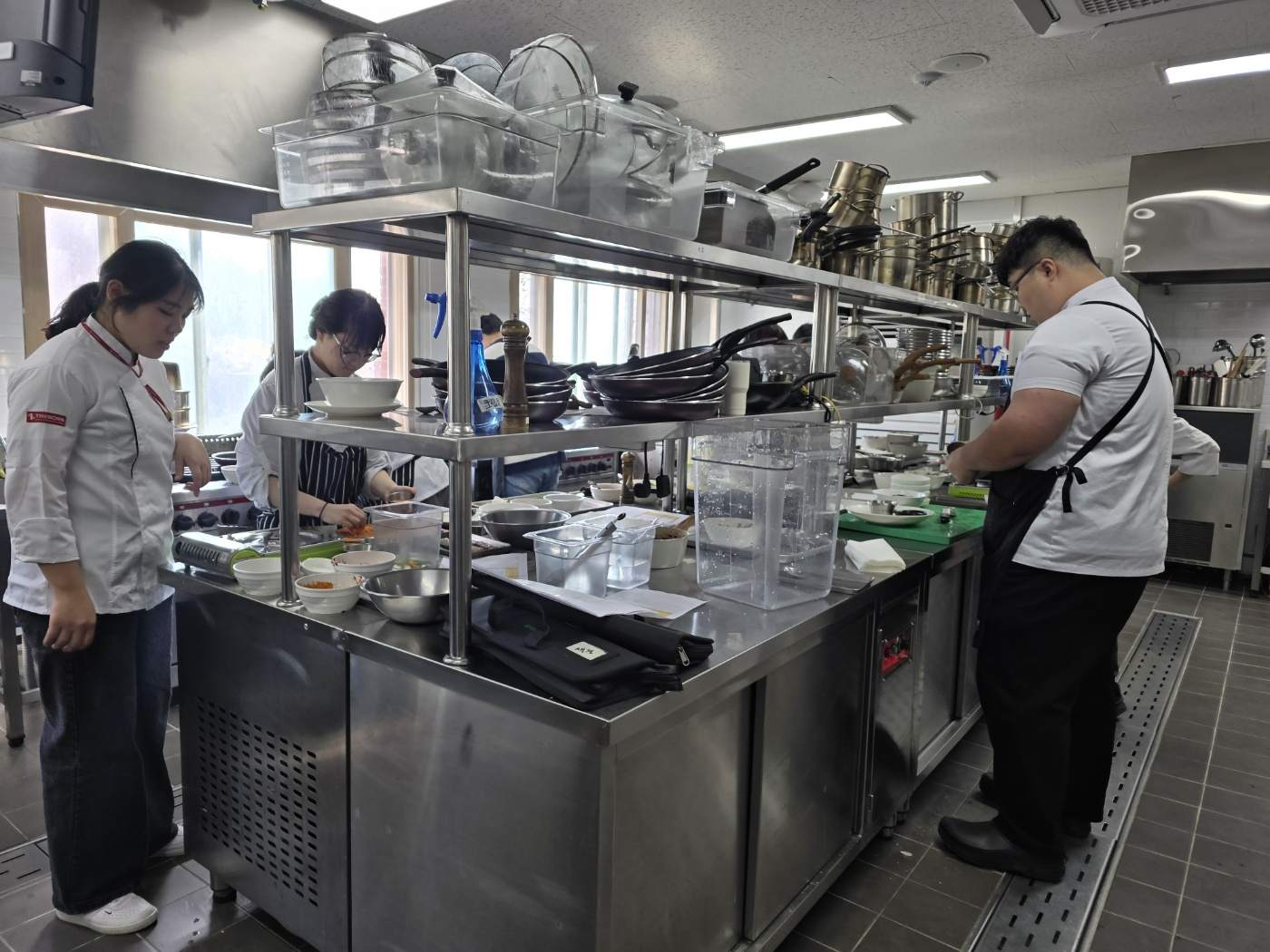 오늘 조리실습 수업시간에는 학과 졸업생이자, 현재 더본외식산업개발원에서 일하고 있는 23학번 문소윤 학생이 학과 재학생들을 대상으로 조리실습(멘토) 역할을 해주었습니다.