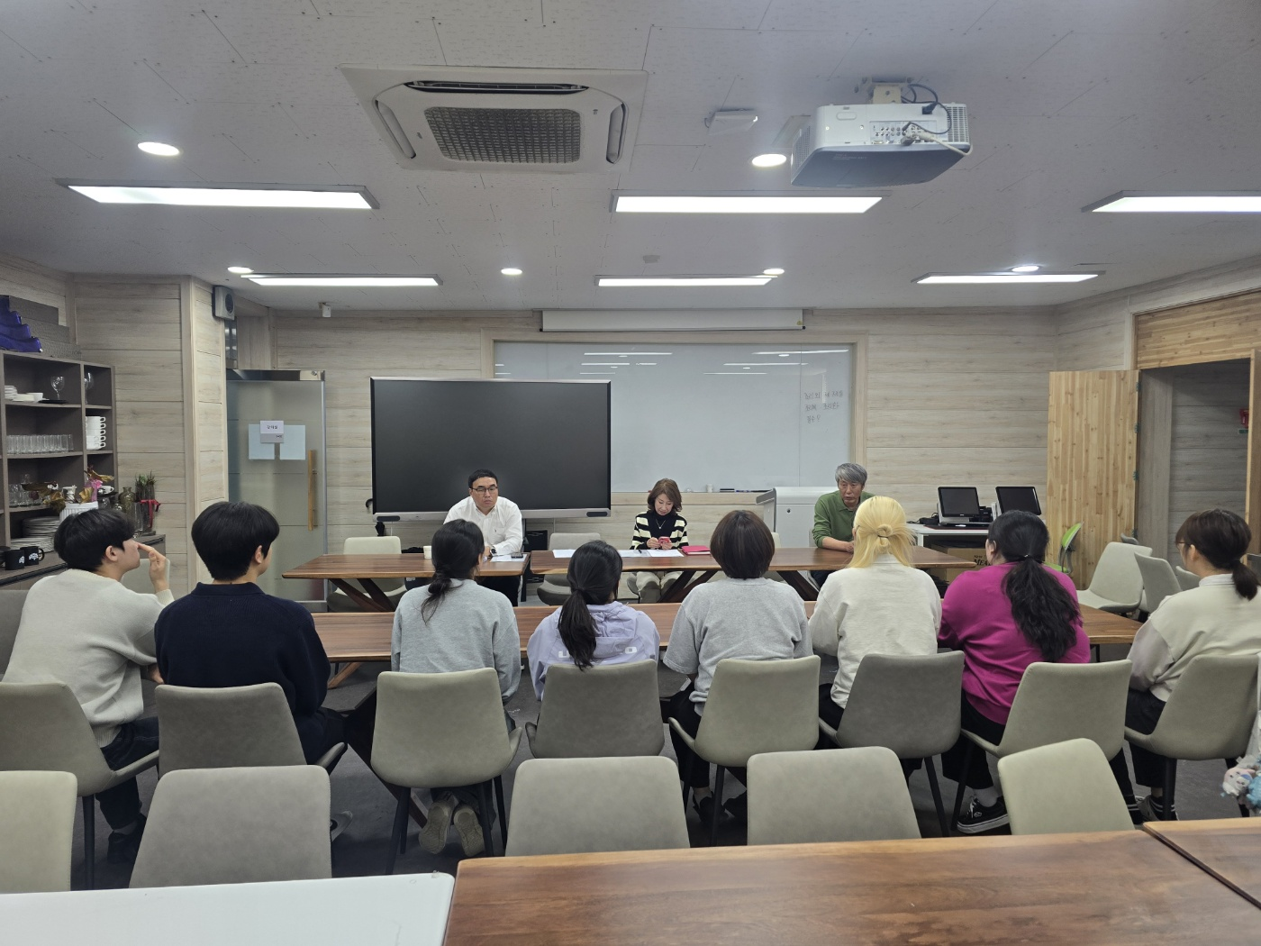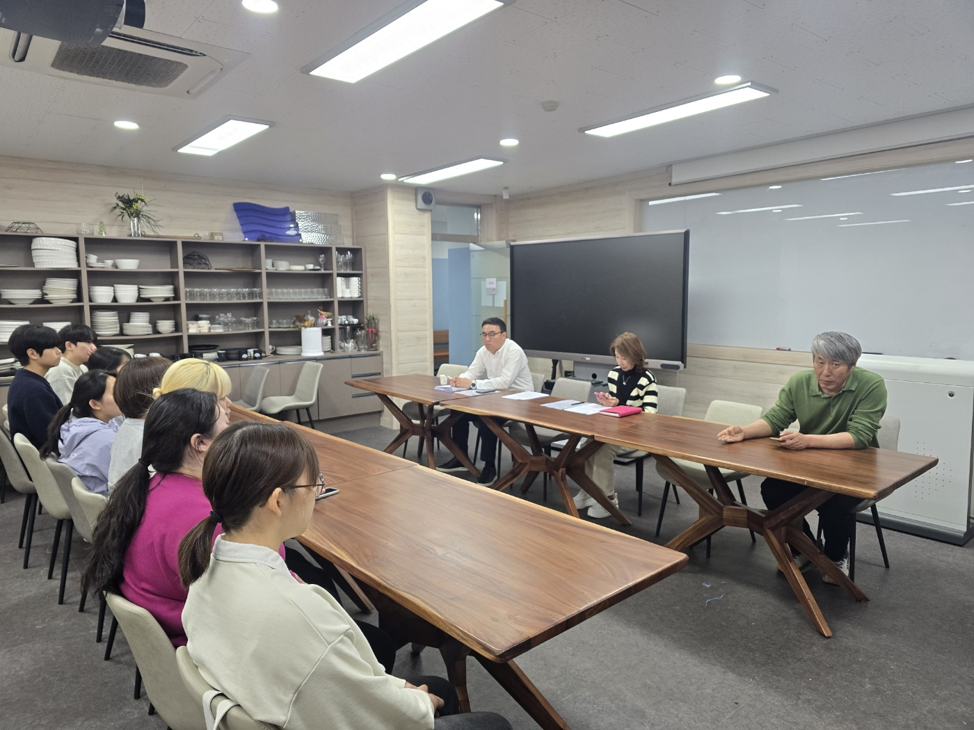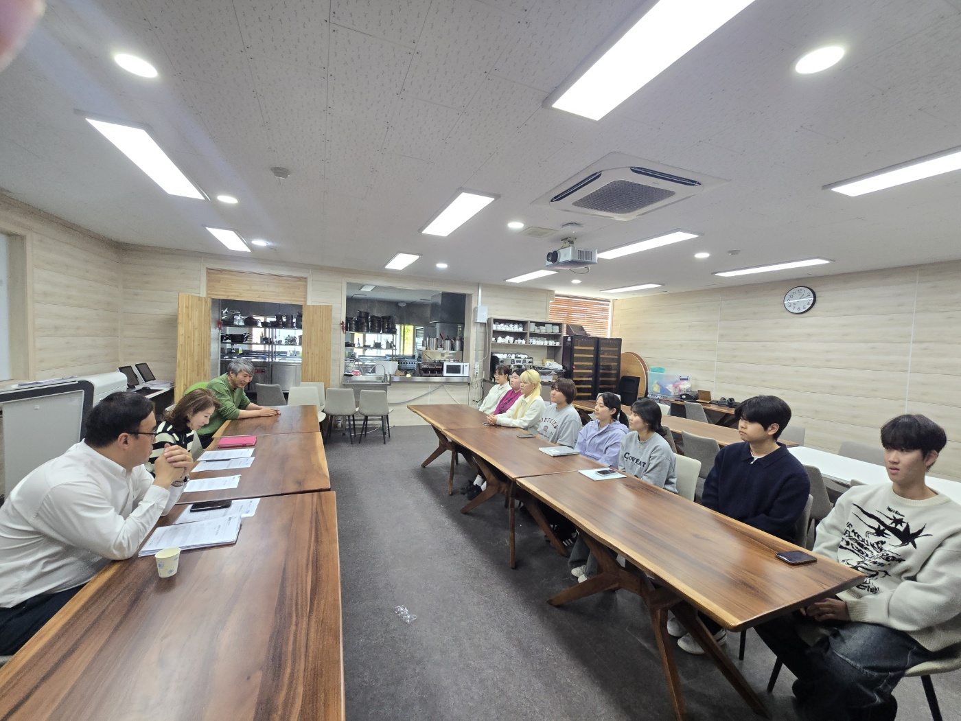 호텔조리제빵학과 이론강의실에서 진행된 하계 어학연수 면접에 참여하고 있는 우리 학과의 재학생들, 성실히 임하는 자세가 대견합니다.