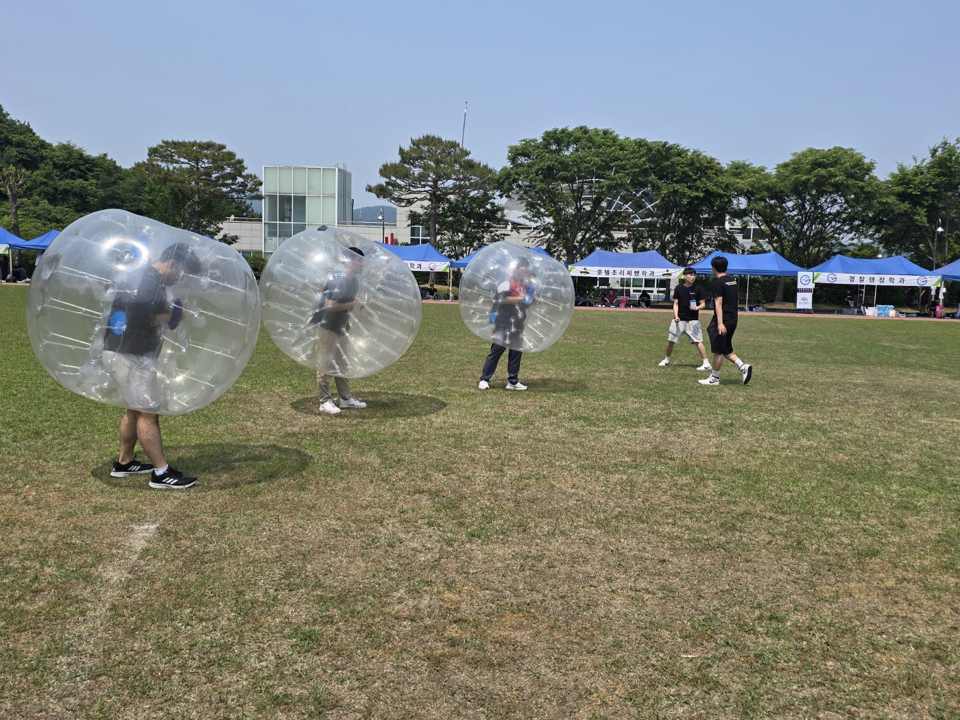 우리 호텔조리제빵학과 재학생들은 오전 일찍부터 체육대회 준비를 하고 있습니다. 그리고 버블슈트라는 체육대회 경기에 참여하여, 무려 우승이라는 값진 결과를 얻었습니다.