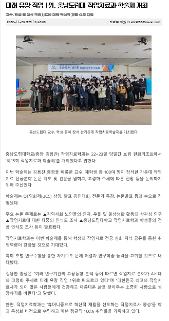 미래 유망 직업 1위, 충남도립대 작업치료과 학술제 개최