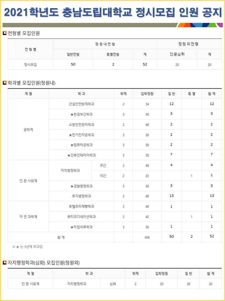 2021학년도 충남도립대학교 정시모집 인원 공지
