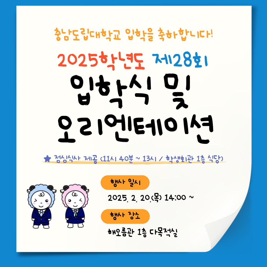 충남도립대학교 제28회 입학식 및 오리엔테이션을 다음과 같이 안내합니다.