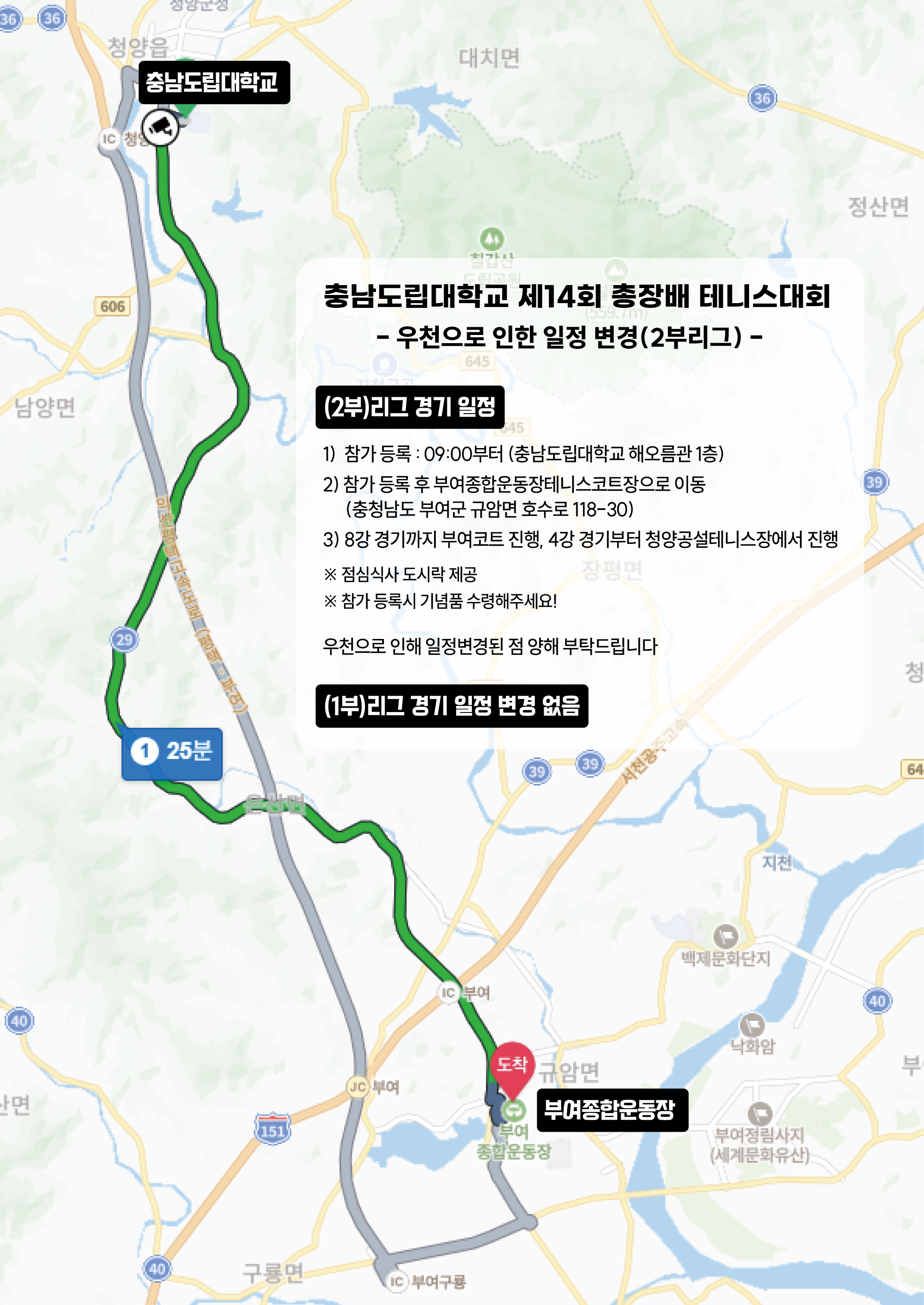 2025년 총장배 제14회 테니스대회 우천 시 장소 변경 안내
